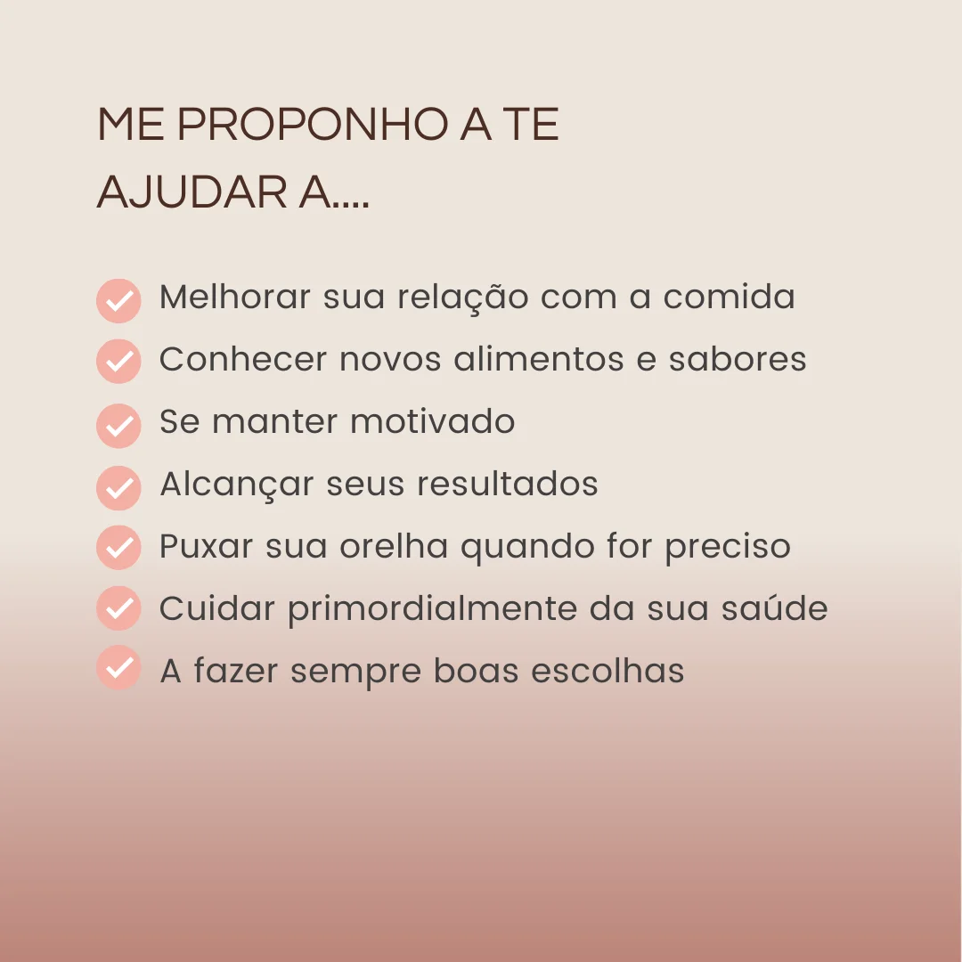 Na consulta nutricional realizo uma abrangente anamnese, onde avalio sua rotina, hábitos alimentares, sistemas gastrointestinal, emocional, intestino, circulatório, hormonal, além de uma análise detalhada de sinais e sintomas.