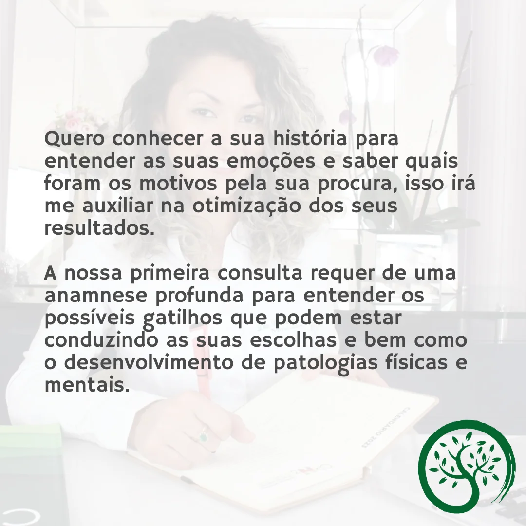 Presencial ou OnlineO atendimento é realizado sempre de forma empática e acolhedora, para compreender a melhor forma de ajudar o paciente através de um tratamento mantenedor com terapias integrativas para que a mudança seja de dentro para fora.