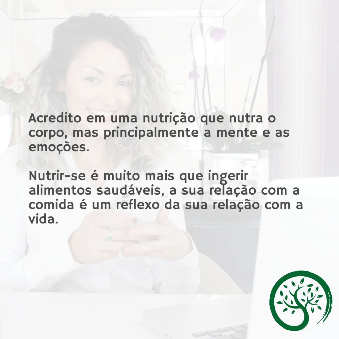Acredito em uma nutrição que nutra o corpo, mas principalmente a mente e as emoções. Nutrir-se é muito mais que ingerir alimentos saudáveis, a sua relação com a comida é um reflexo da sua relação com a vida. O meu propósito é auxiliar o paciente como um todo, para que ele entenda como o seu organismo funciona, melhorando alguns hábitos, sintomas, intervindo nas alterações de exames, no controle do uso de medicamentos e tendo resultados mais saudáveis a longo prazo.